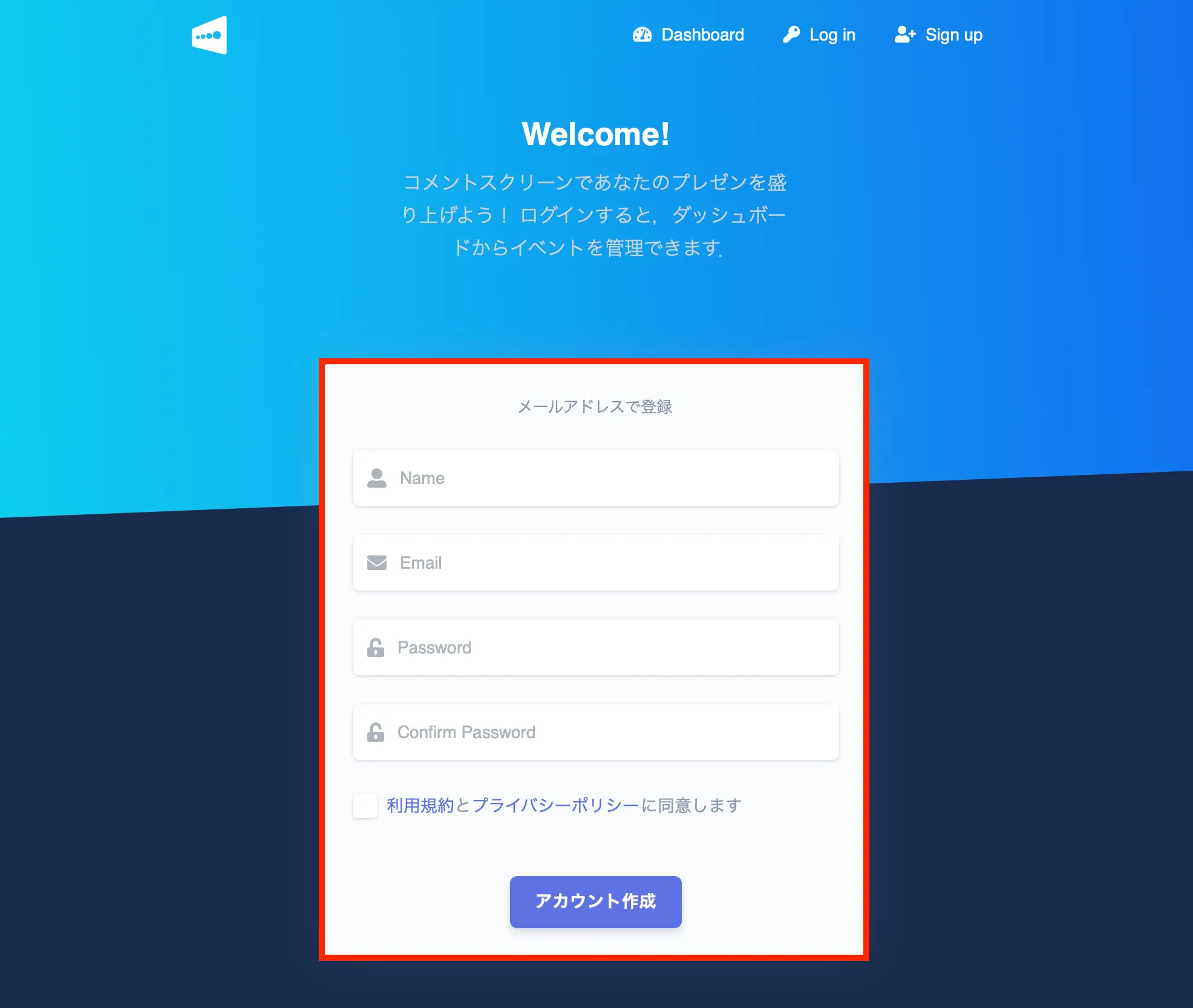 教員から共有されたリンクを開くか,またはQRコードを読み取ることで,学生は以下の画面に飛ぶことができます.この画面でコメントを寄せたり,スタンプを押したりすることで,教員の画面に表示され,全体に共有されます.