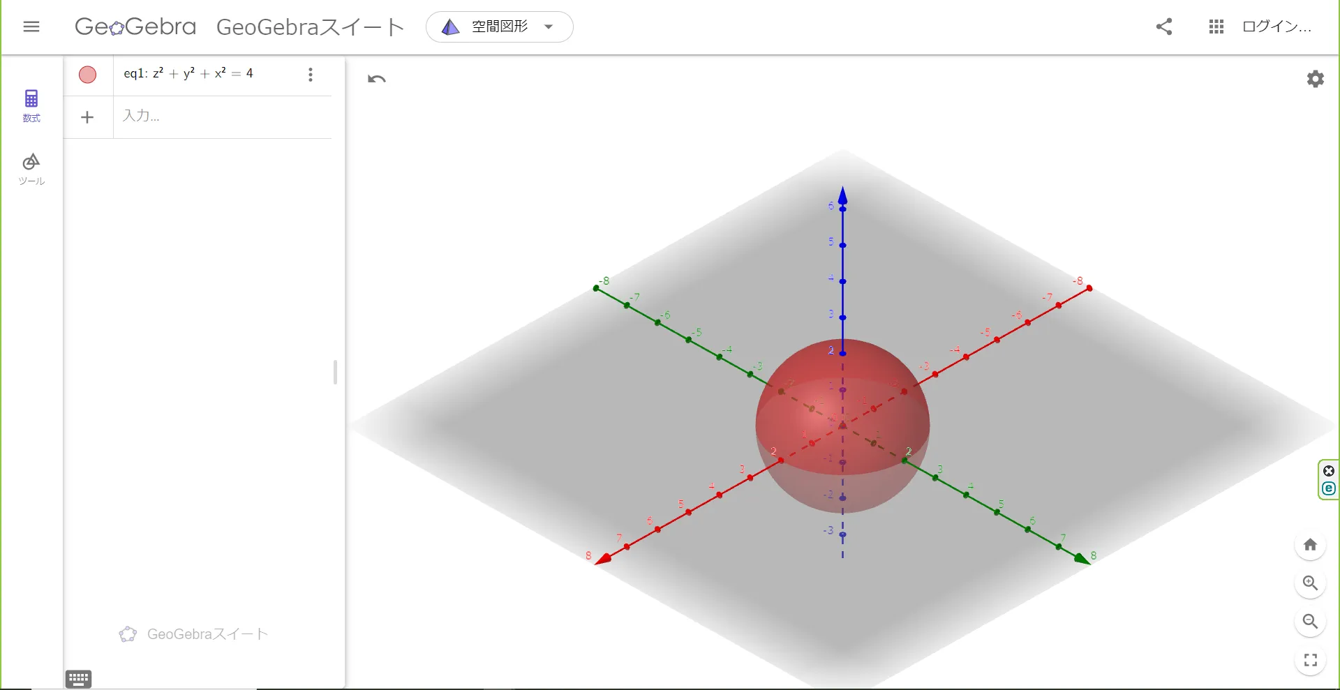 Geogebraでは,数式を記入することでその数式を表現したグラフを作成できます.数式を記述するだけで簡単にグラフが出力されること,空間図形の描写など幅広い機能を備えていることが特徴です.
