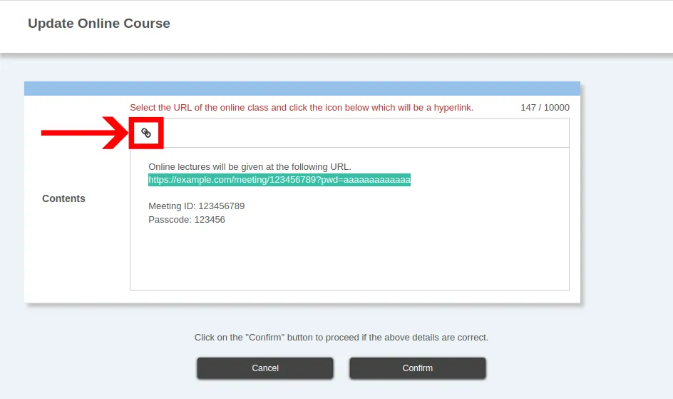When editing the Online course information, keep the following points in mind: