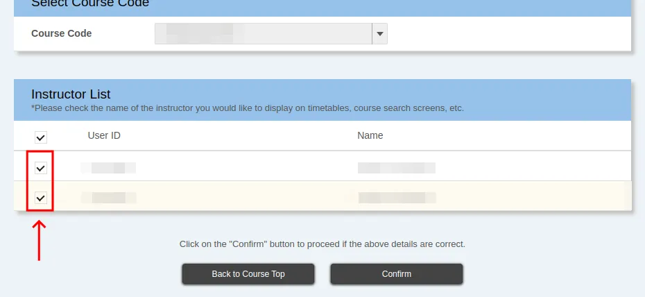 Instructor List limits the display of course instructors to the timetable and the course top. This feature is useful for courses involving multiple instructors, where only the representative instructor should be displayed to students.