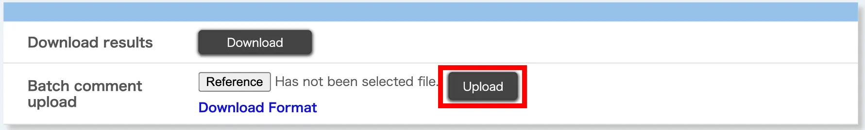 In the “Batch comment upload” section, click “Download Format”.