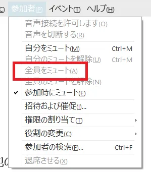 • To mute all attendees, go to the Participant tab and select “Mute All”.