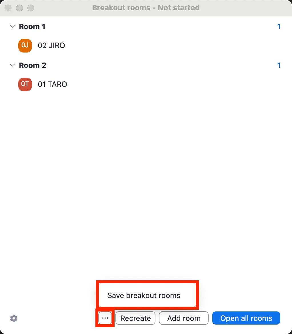 2. From the ”…” at the bottom of the window that is displayed, click “Save Breakout Rooms”.