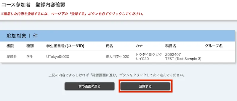 コース参加者を登録する際には以下の点に留意してください.