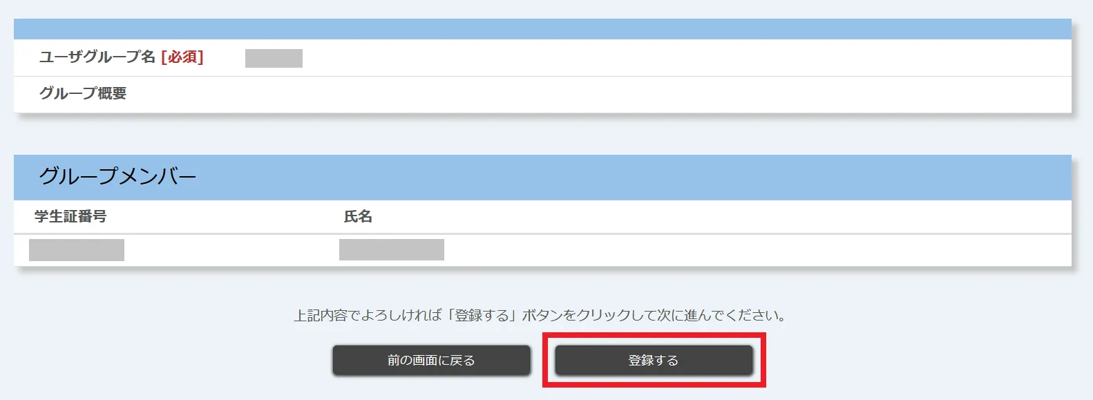 5. 内容を確認し,問題がなければ「登録する」を押してください.