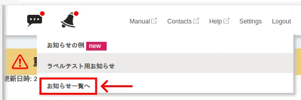 お知らせと更新通知の一覧は,画面上部に表示されるバーから見ることができます.